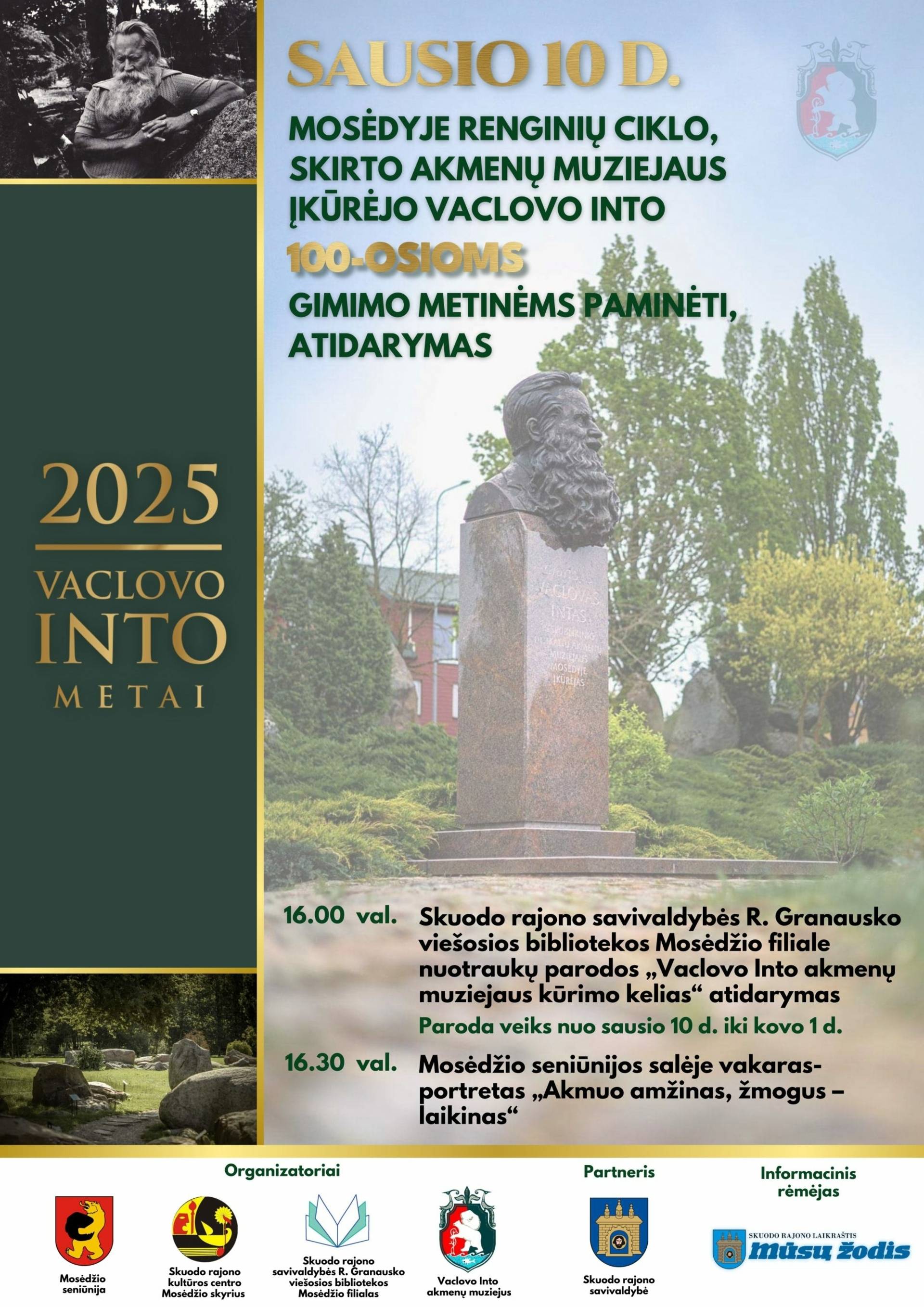 Gydytojas, gamtininkas, geologas, Akmenų muziejaus įkūrėjas, Skuodo rajono garbės pilietis Vaclovas Intas - išskirtinė asmenybė, svarbi Mosėdžiui, Skuodo rajonui ir visai Lietuvai. Jo palikimas – ne tik unikalus akmenų muziejus, bet ir įkvėpimas ateities kartoms, kaip drąsios idėjos ir atsidavimas gali sukurti tai, kas išlieka amžiams.